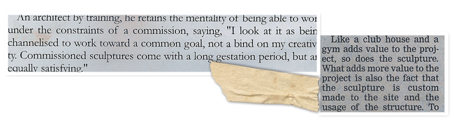 A larger part of my time is spent towards designing and creating site specific, custom made sculptures. Before designing, I meet with the client and the architect to understand the nature of the structure and the proposed location of the sculpture. After that I design the sculpture, decide its scale, and the right materials to bring out the correct aesthetic effect desired.